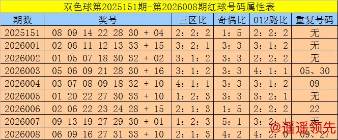 福彩双色球第2026008期奖号为:06 09 16 27 31 33 + 10,红球奇偶比为4:2,三区比为2:1:3,012路比为4:2:0,重号:09、27。