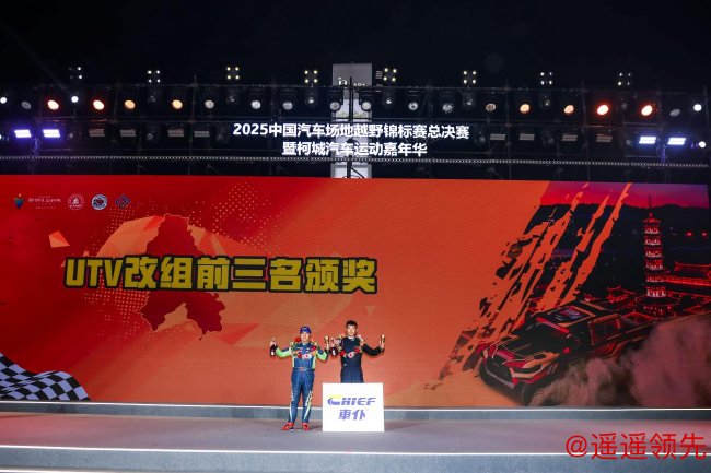 UTV量产组中,Polaris北极星车队的王晓鹏上演绝地逆转,他从第六位发车,凭借精准的走线及合理的战术安排,逐步超过前面的对手,捧得该组冠军。辽宁凤城时代酒业车队的胡健和李松分列亚军、季军。