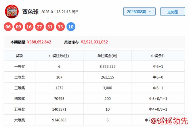 双色球第2026008期开奖号码为:06、09、16、27、31、33+10。其中红球三区比为2:1:3星空体育官网,奇偶比为4:2,包含2个重号:09、27,蓝球出现在第三区。