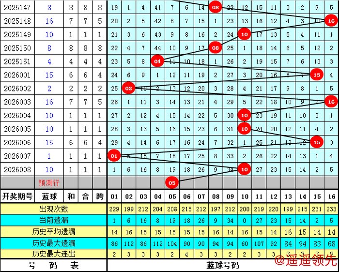 蓝球分析【一区01-04,二区05-08,三区09-12,四区13-16】:上期蓝球为10,出现在第三区,近50期区间比为12:11:16:11,近10期区间比为3:1:3:3,本期预计蓝球出现在第二区,推荐蓝球05。